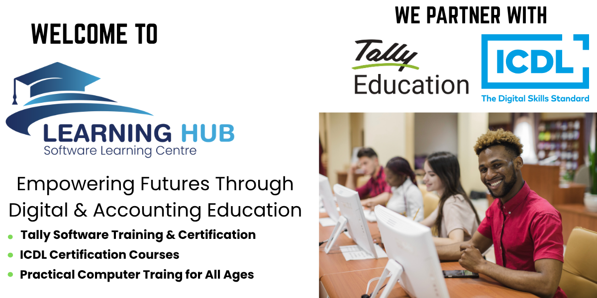 Learning HUB is your trusted platform for professional training in TallyPrime accounting software and ICDL (International Certification of Digital Literacy) courses. We are committed to providing high-quality, practical education to help individuals, students, and businesses enhance their accounting, business management, and digital skills. Our programs are led by experienced trainers, with certifications recognized globally and by the Rwandan Government. Whether you aim to master financial management or build essential digital competencies, Learning HUB offers flexible, accessible, and career-focused learning designed to empower your success.